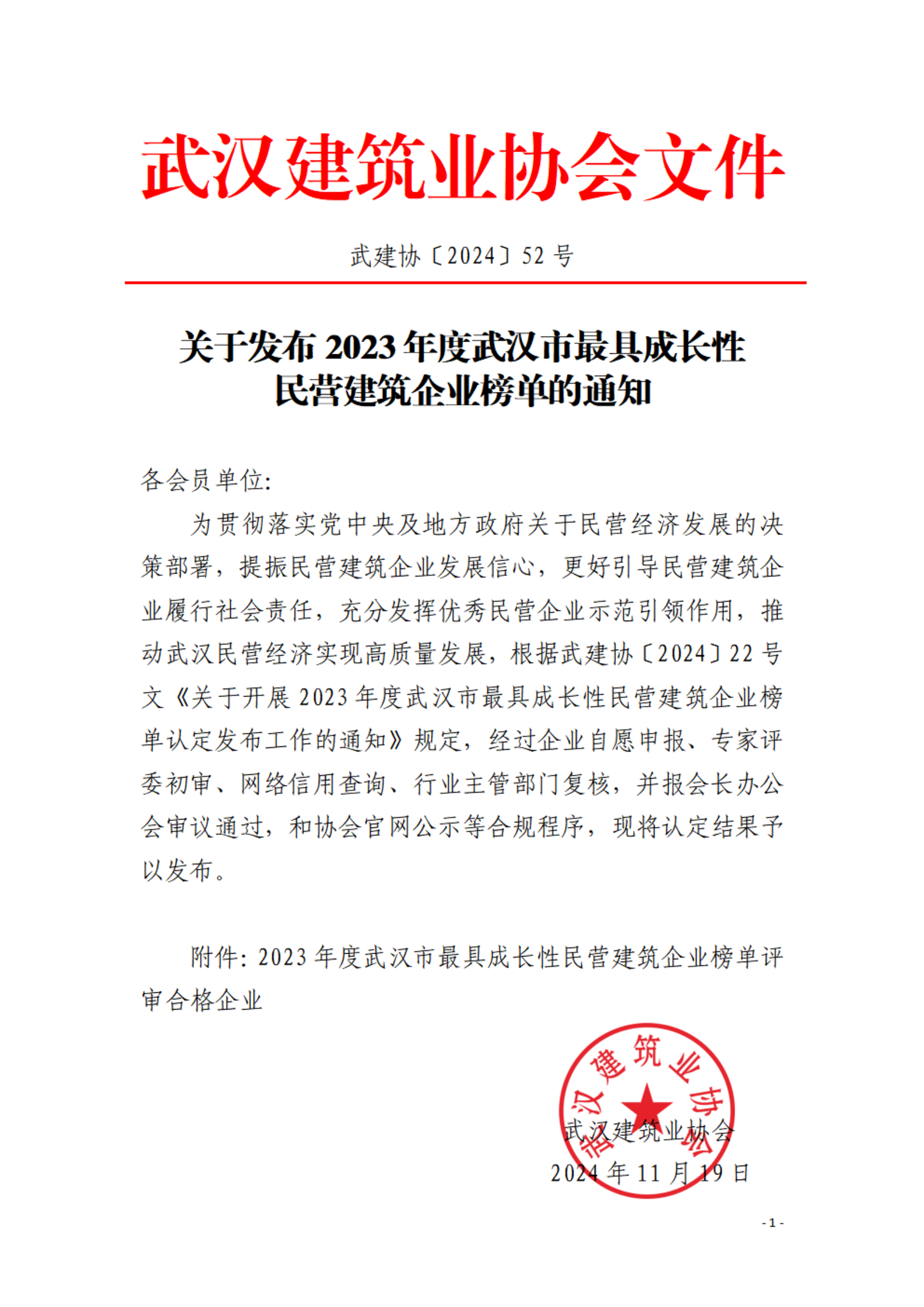 • 湖北省建工第五建設(shè)有限公司榮膺2023年度武漢市最具成長性民營建筑企業(yè)